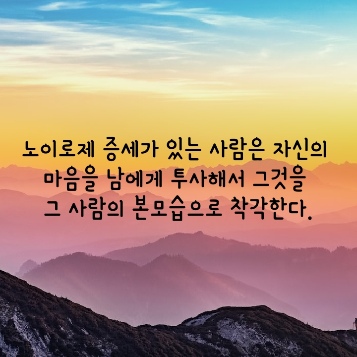 노이로제 증세가 있는 사람은 자신의 심적 갈등에 사로잡혀 있기 때문에 남의 마음을 이해할 수 있는 능력이 없다.